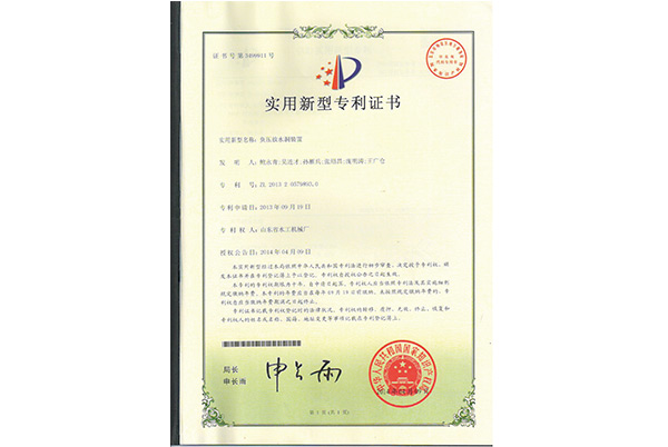 实用新型专利证书—负压放水洞装置