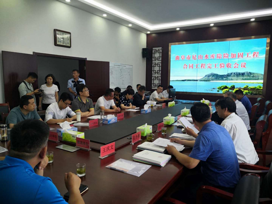 2020年5月30日上午,曲阜市尼山水库管理局主持召开了曲阜市尼山水库除险加固工程合同工程完工验收会议。济宁市城乡水务局、曲阜市尼山水库管理局、山东省水利勘测设计院、济宁市水利工程建设监理中心有限九游娱乐(NINE GAME)官方网站、山东省水利工程试验中心、九游娱乐(NINE GAME)官方网站等单位的代表参加了会议。