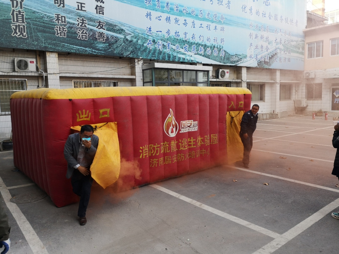 本次培训由居安防火培训中心裴主任授课,结合近期重大火灾案例、消防安全基本常识、常见火灾起因、逃生的要点进行了详细讲解,对常见消防设备的配置及正确使用方法进行了演示,还针对日常生活中常出现的电器起火、厨房火灾、楼道起火等情况进行了特别讲解,使参培人员掌握了常见消防器材的基本操作和使用。在应急演练中,借助消防疏散逃生体验屋模拟火灾现场的真实状况,让参培人员切身体验火灾逃生过程。随后,裴主任演示了灭火器的正确使用方法、步骤、和灭火姿势,安排参培人员现场实操灭火。整个逃生演练及灭火实操按预练方案有序进行,达到了预期效果。