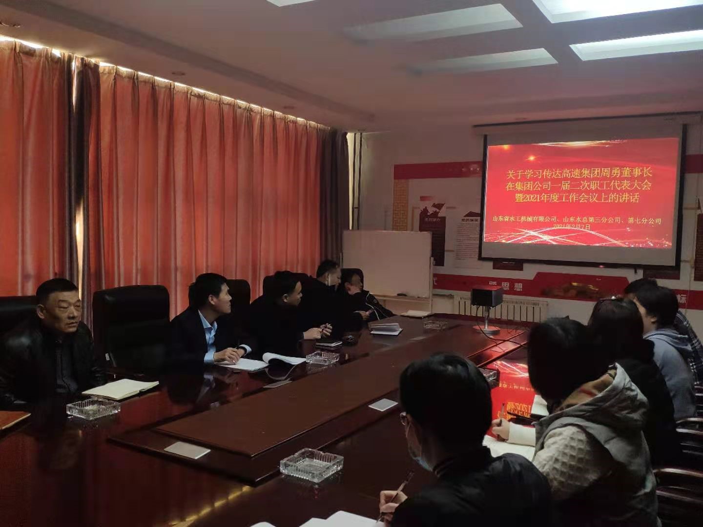 山东省水工机械有限九游娱乐(NINE GAME)官方网站、山东水总第三分九游娱乐(NINE GAME)官方网站、第七分九游娱乐(NINE GAME)官方网站传达学习集团党委书记、董事长周勇同志在2021年度工作会议上的讲话
