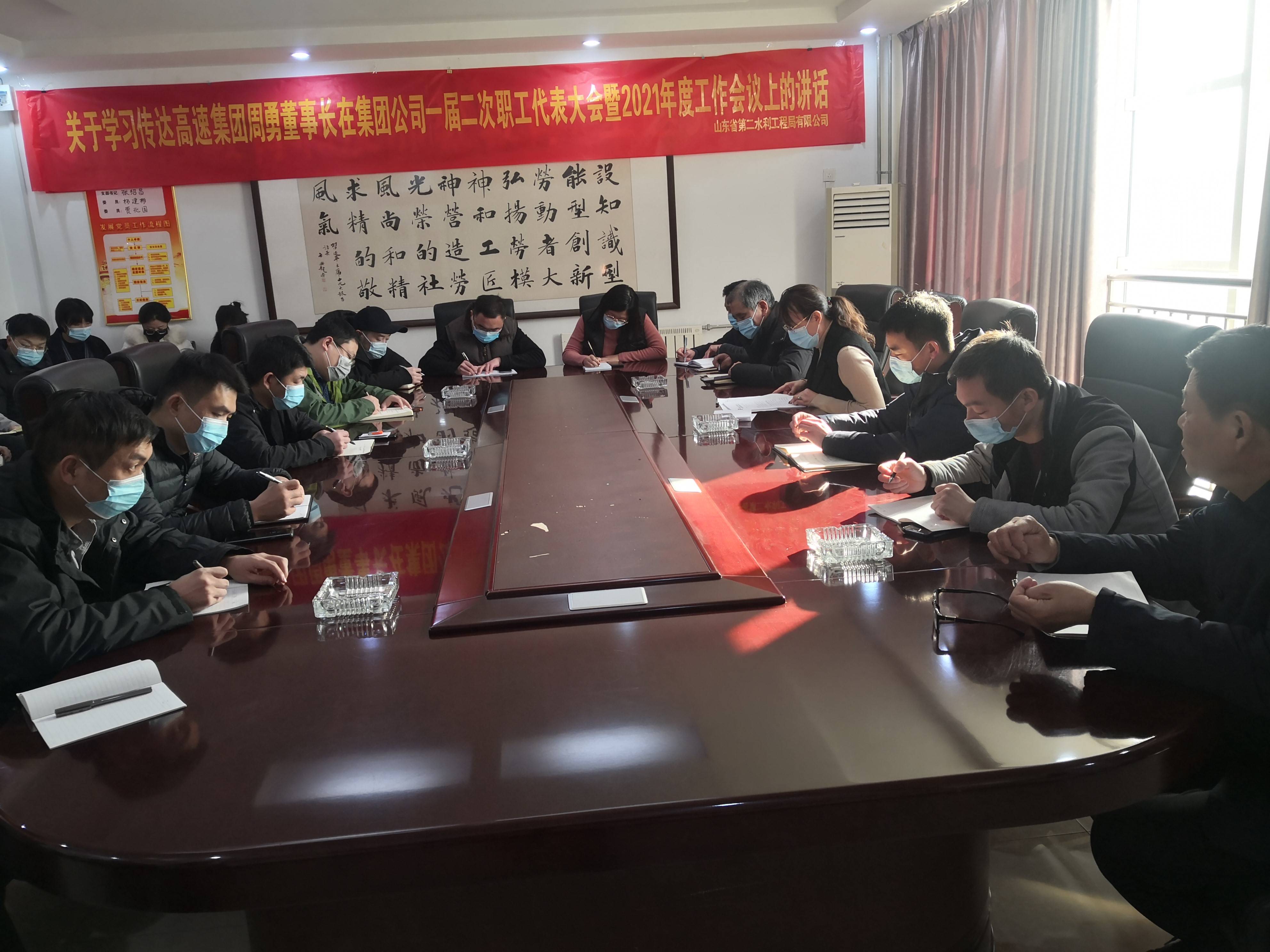 2021年2月8日,山东省第二水利工程局有限九游娱乐(NINE GAME)官方网站召集机关各科室、各项目人员组织开展学习贯彻集团党委书记、董事长周勇在集团九游娱乐(NINE GAME)官方网站一届二次职工(会员)代表大会暨2021年度工作会议上的重要讲话。