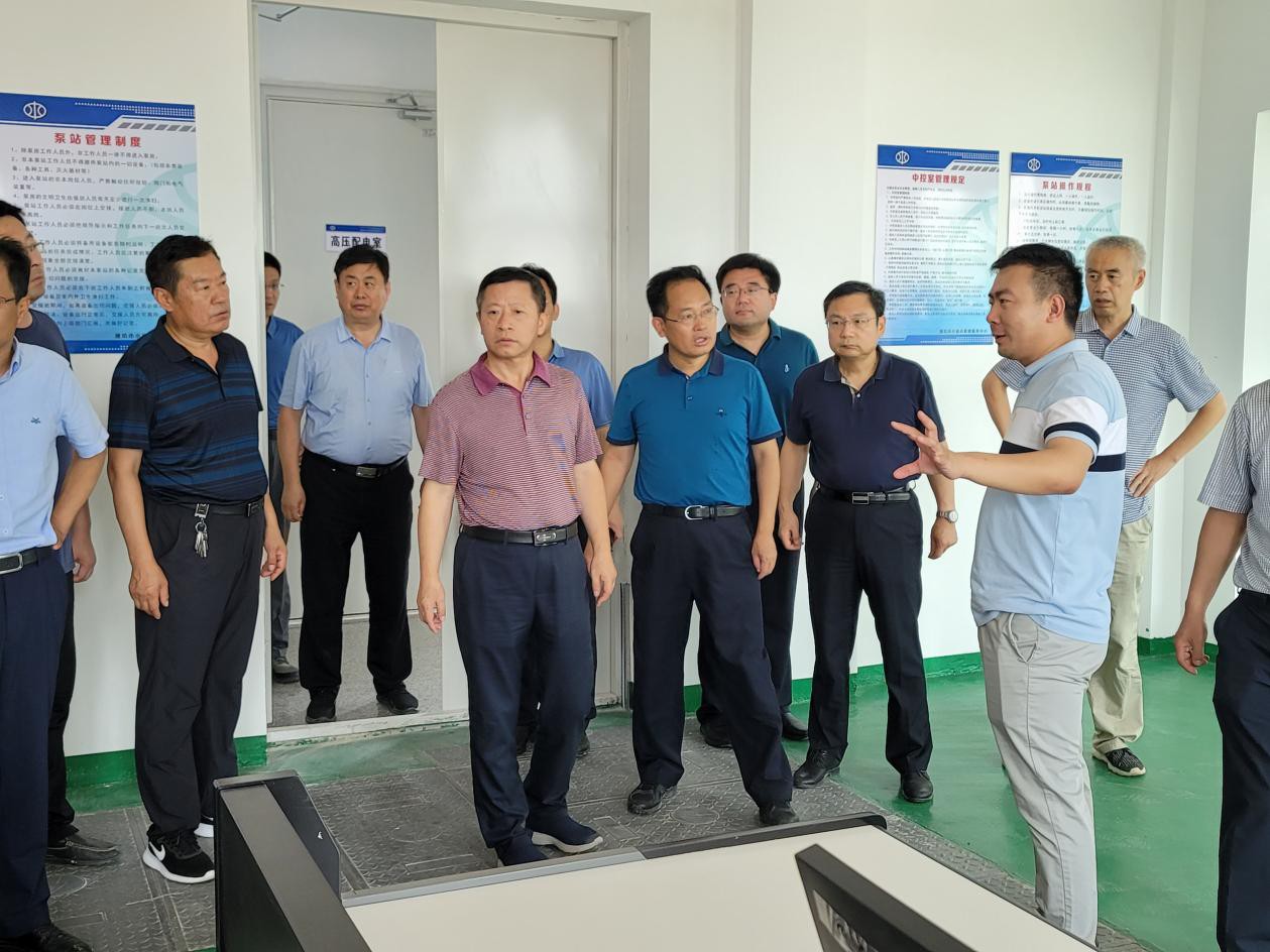 7月8日,在省流域中心、潍坊市、寿光市相关领导的陪同下,山东省水利厅一级巡视员王祖利到我九游娱乐(NINE GAME)官方网站承建的羊桥泵站、八面河泵站视察工程防洪度汛准备情况。检查组一行察看了泵站中控室、主厂房、挡潮闸等,项目经理张仰保汇报了工程所取得的进展,操作人员演示了主泵开机排涝,检查组对工程所取得的效果一致表示满意。