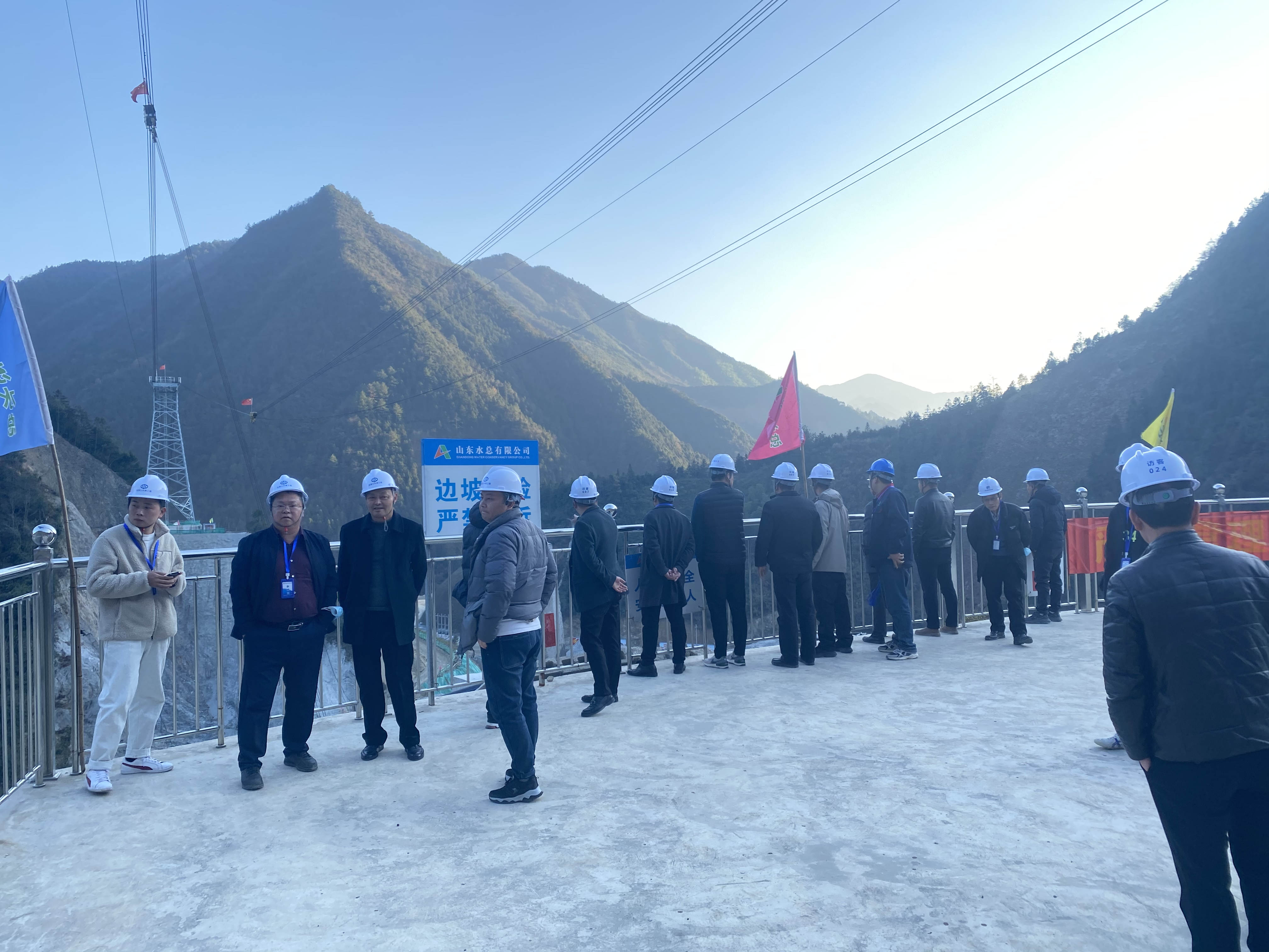12月4日,遂昌县水利局党组副书记、副局长张水明,总工孟伟烽等一行十三人到临安区双溪口水库工程参观指导工作。杭州鲁润九游娱乐(NINE GAME)官方网站副总经理孟天琦及相关人员陪同参观了工程施工现场和项目标准化营区。