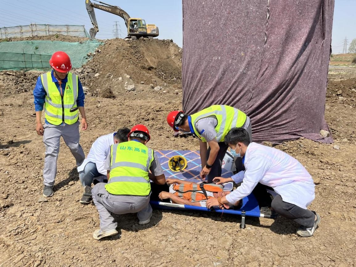 基础九游娱乐(NINE GAME)官方网站枣庄蟠龙河项目部举行高空坠落应急演练暨“安全生产月”开幕式