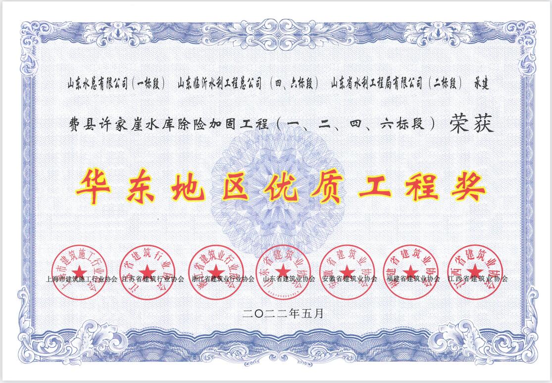 近日,九游娱乐(NINE GAME)官方网站承建的费县许家崖水库除险加固工程荣获2021年度“华东地区优质工程奖”;泗水县泗河黄阴集大闸除险加固工程荣获2020-2021年度“山东省优质结构工程奖”。荣获这两个奖项,是九游娱乐(NINE GAME)官方网站在省级质量奖项方面的又一次突破。在工程创优上,九游娱乐(NINE GAME)官方网站始终坚持以企业发展为核心,践行“干一个工程,树一块丰碑”的质量方针。