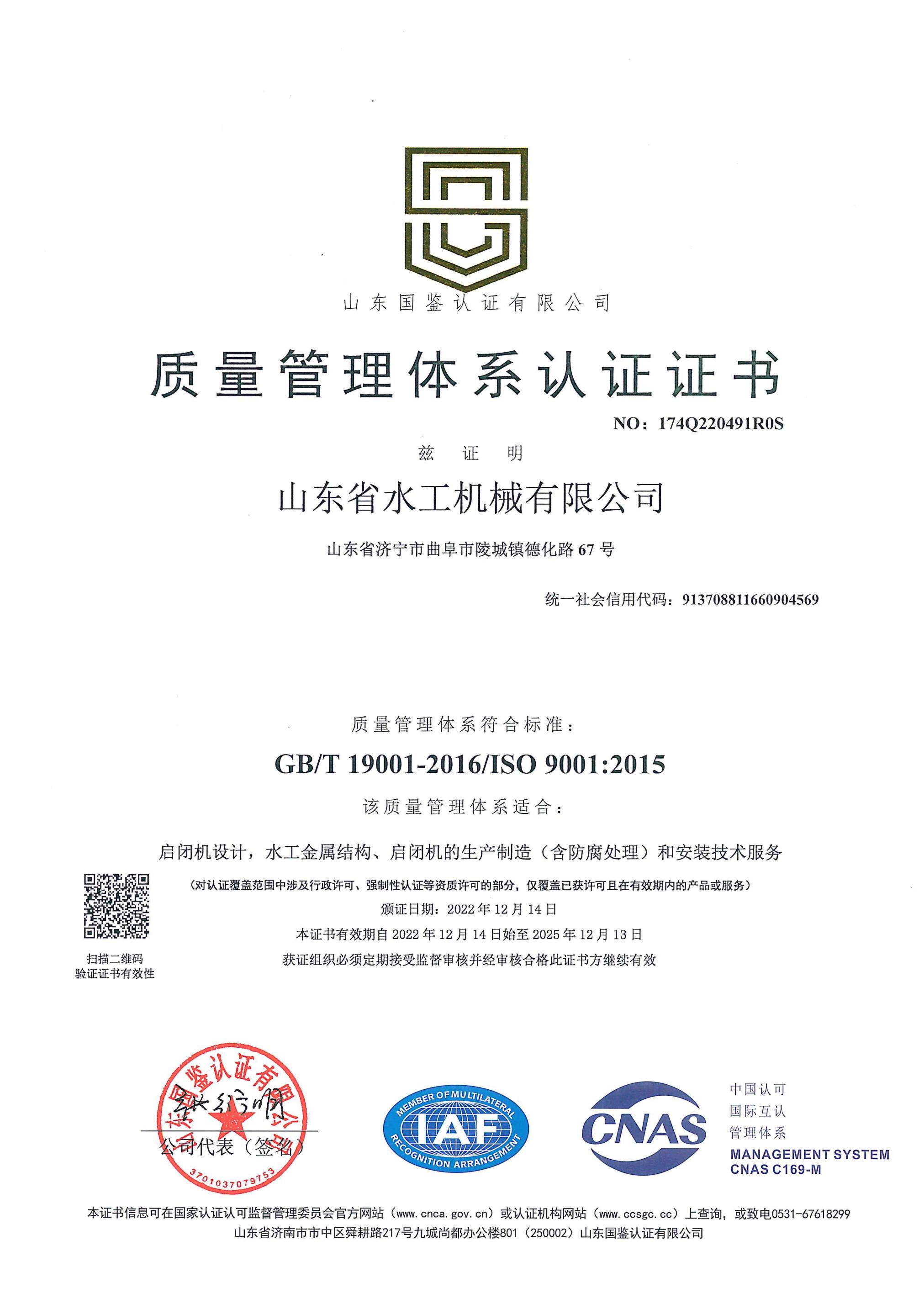 此次重新认证审核的顺利通过,标志着水工机械九游娱乐(NINE GAME)官方网站质量、环境、职业健康安全管理体系稳步提升,增强了企业核心竞争力和品牌价值。九游娱乐(NINE GAME)官方网站负责人王淼要求,各部室要高度重视体系管理工作对九游娱乐(NINE GAME)官方网站规范化管理的推动作用,对审核过程中发现的问题要立行立改,确保纠正与预防措施整改到位,提升管理体系效能,切实提高九游娱乐(NINE GAME)官方网站管理水平。