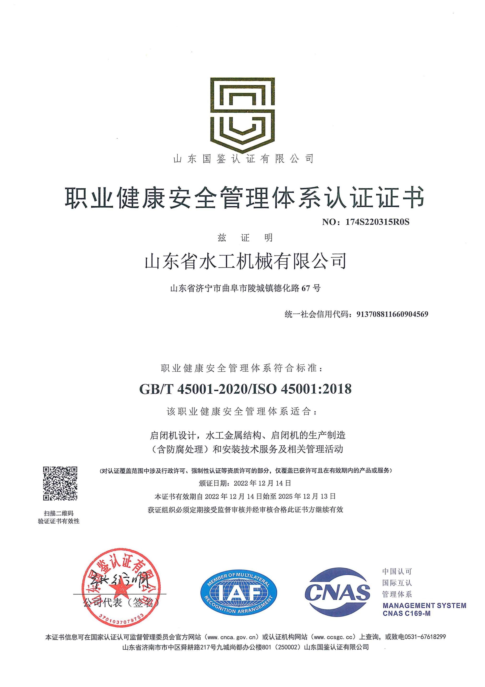 12月22日,水工机械九游娱乐(NINE GAME)官方网站顺利通过质量、环境、职业健康安全管理体系重新认证审核。