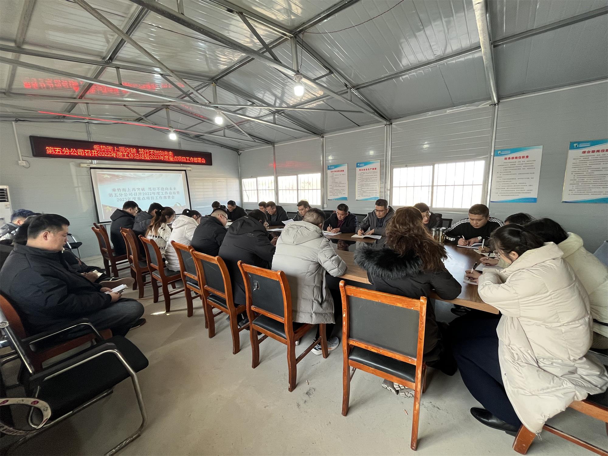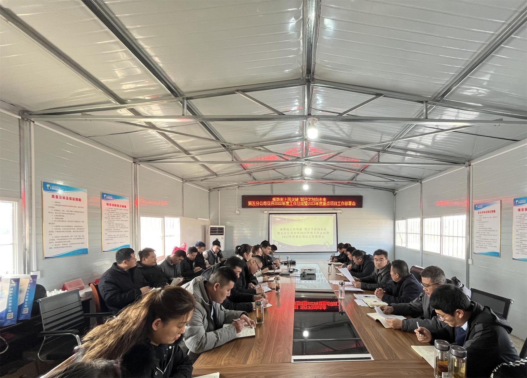 1月30日,第五分九游娱乐(NINE GAME)官方网站在无棣黄瓜岭项目部召开2022年度工作总结暨2023年度重点项目工作部署会议,上好“开工第一课”。九游娱乐(NINE GAME)官方网站在鲁职工参加会议,会议由党支部书记、总经理蔡国森主持。