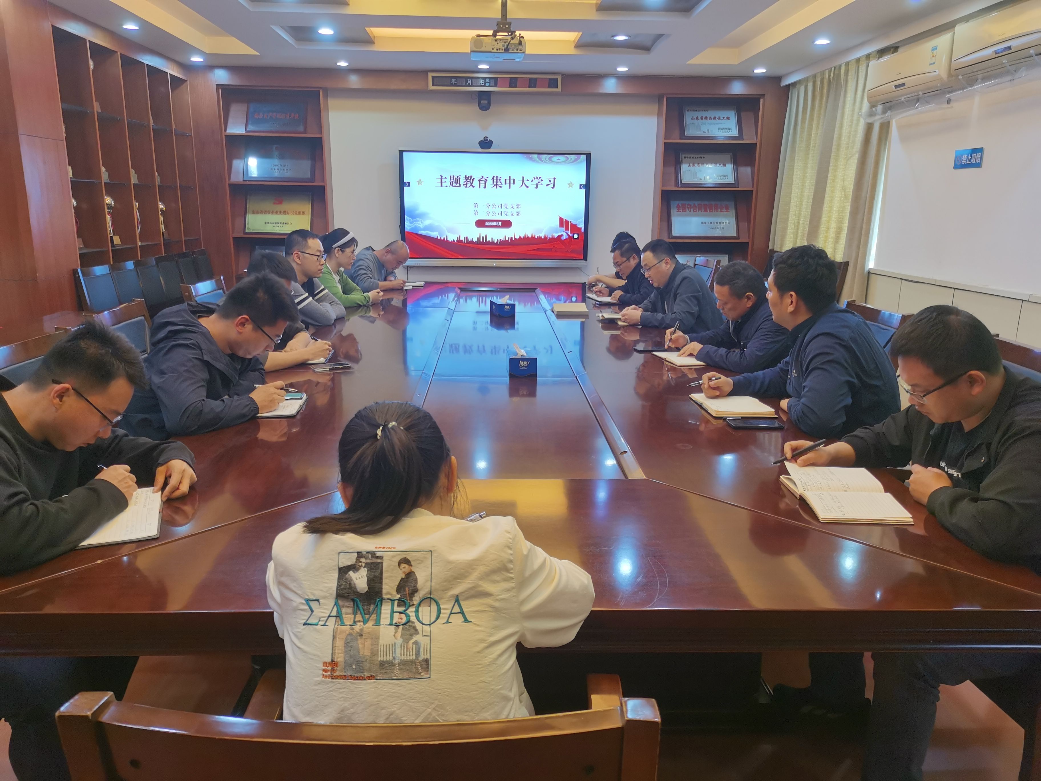 5月6日,第一分九游娱乐(NINE GAME)官方网站党支部、第二分九游娱乐(NINE GAME)官方网站党支部组织在济党员、青年职工联合开展主题教育集中大学习。