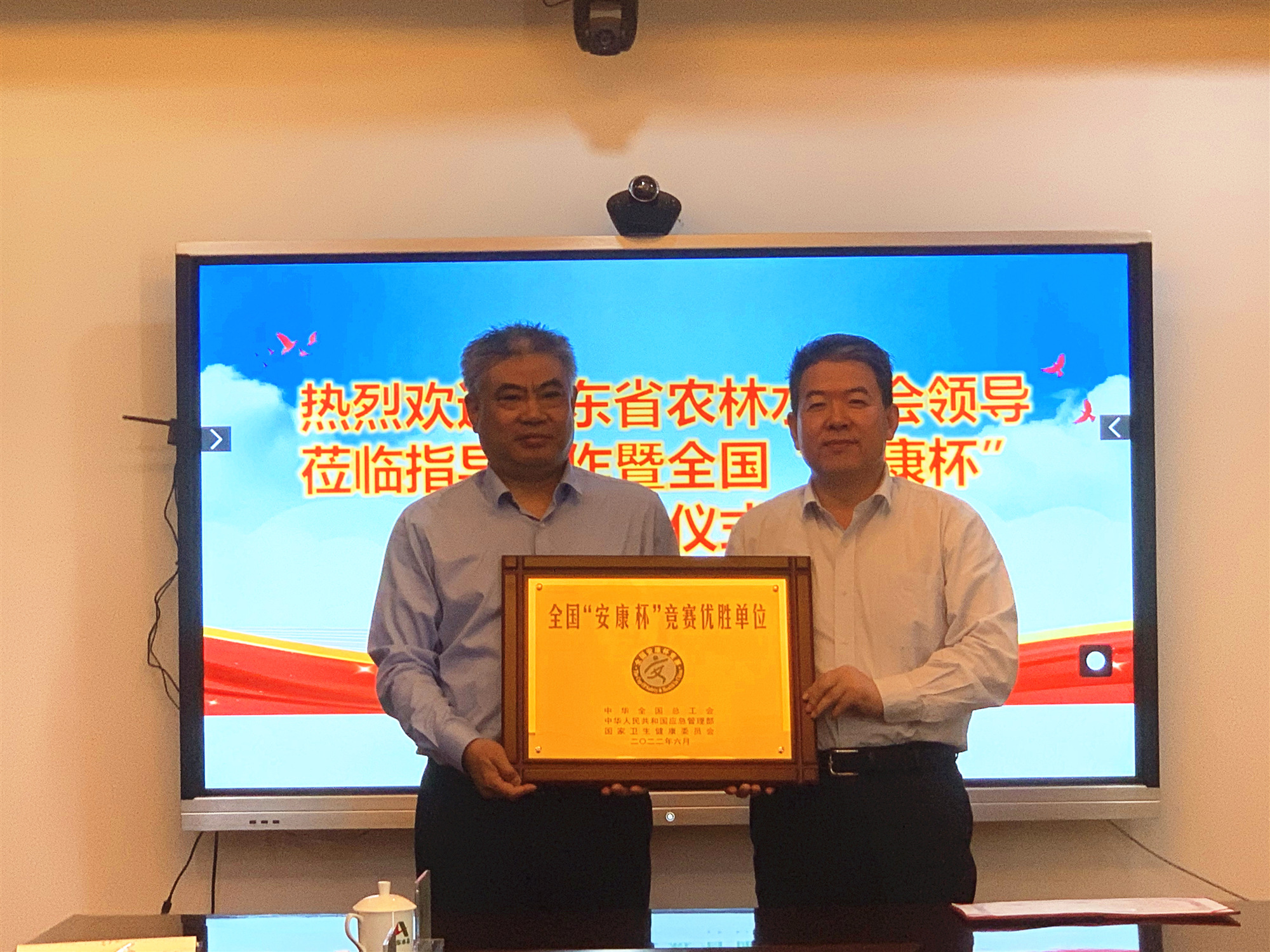 5月12日,九游娱乐(NINE GAME)官方网站举行了全国、山东省“安康杯”竞赛优胜单位授牌仪式。省农林水工会主席张志刚、主任科员吴开明,九游娱乐(NINE GAME)官方网站党委书记、董事长刘深远,党委副书记、董事、总经理靳文硕,党委委员、副总经理付海华,党委组织部、安全管理部相关人员参加仪式活动。