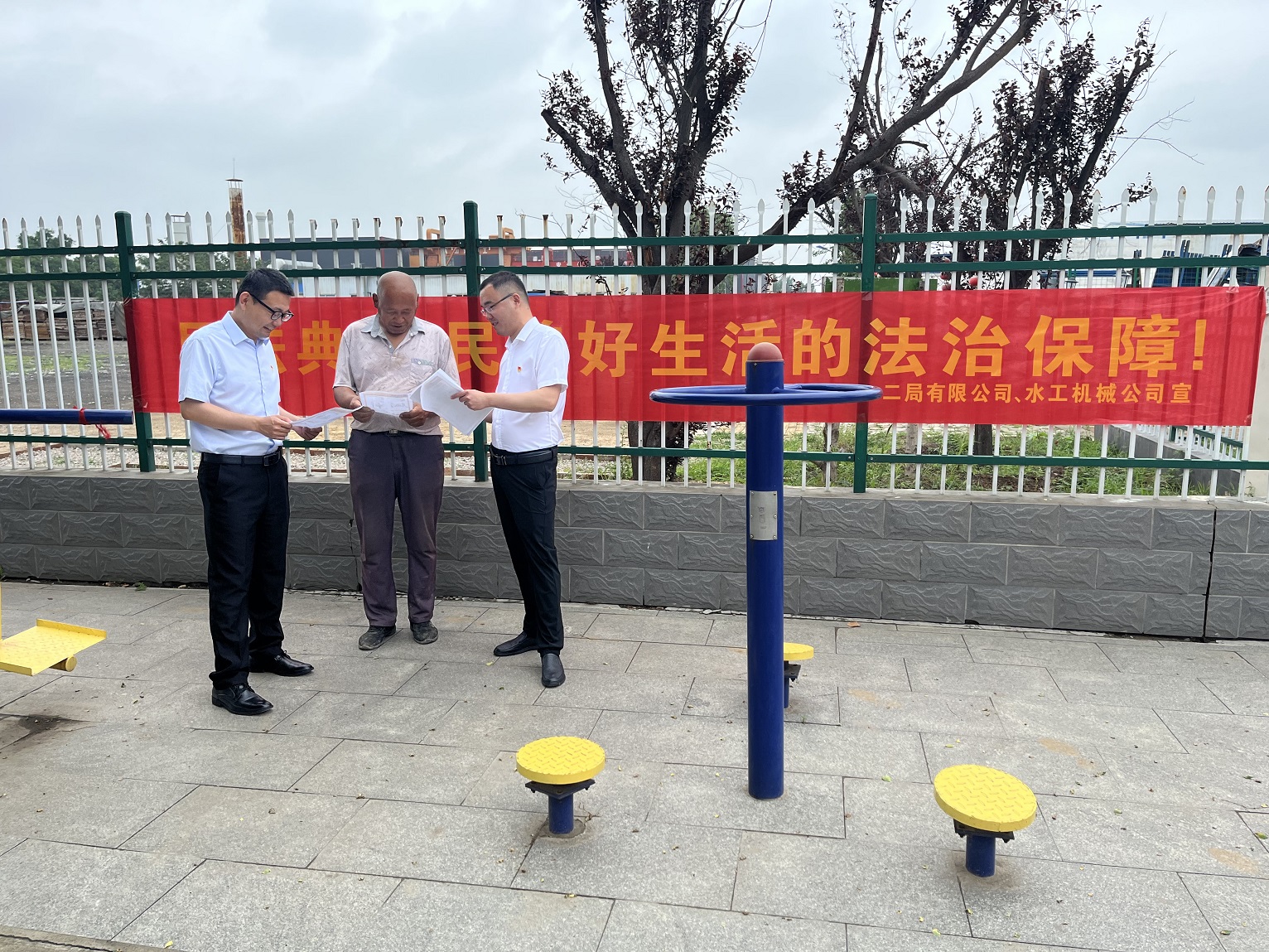 为深入开展学习贯彻习近平新时代中国特色社会主义思想主题教育,进一步推动“我为群众办实事”活动走深走实,5月28日水工机械九游娱乐(NINE GAME)官方网站党支部同二局有限九游娱乐(NINE GAME)官方网站第一、第二党支部联合开展美好生活·民法典相伴普法宣传活动。