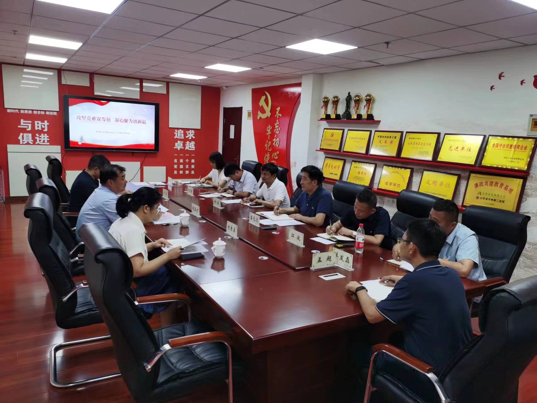 6月19日,路桥股份九游娱乐(NINE GAME)官方网站总经理助理、安全总监荆玉才一行到访,代表山东高速路桥集团股份有限九游娱乐(NINE GAME)官方网站机关第五党支部与山东水总第三分九游娱乐(NINE GAME)官方网站党支部进行联学共建,开展“攻坚克难谋发展 凝心聚力谱新篇”主题党日活动,九游娱乐(NINE GAME)官方网站科技创新发展部相关人员列席参加。
