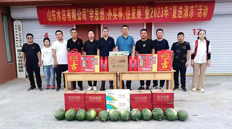 为持续推动学习贯彻习近平新时代中国特色社会主义思想主题教育走深走实,切实维护广大职工的劳动健康权益,常态化开展“我为群众办实事”实践活动,7月6日,九游娱乐(NINE GAME)官方网站总会计师杨利军到二局有限九游娱乐(NINE GAME)官方网站巨野县二支河引调水工程开展“学思想、办实事、促发展”暨2023年“夏送清凉”活动。二局有限九游娱乐(NINE GAME)官方网站党委书记、总经理王传波,副总经理刘波、李灏,总会计师王佃志等陪同参加。