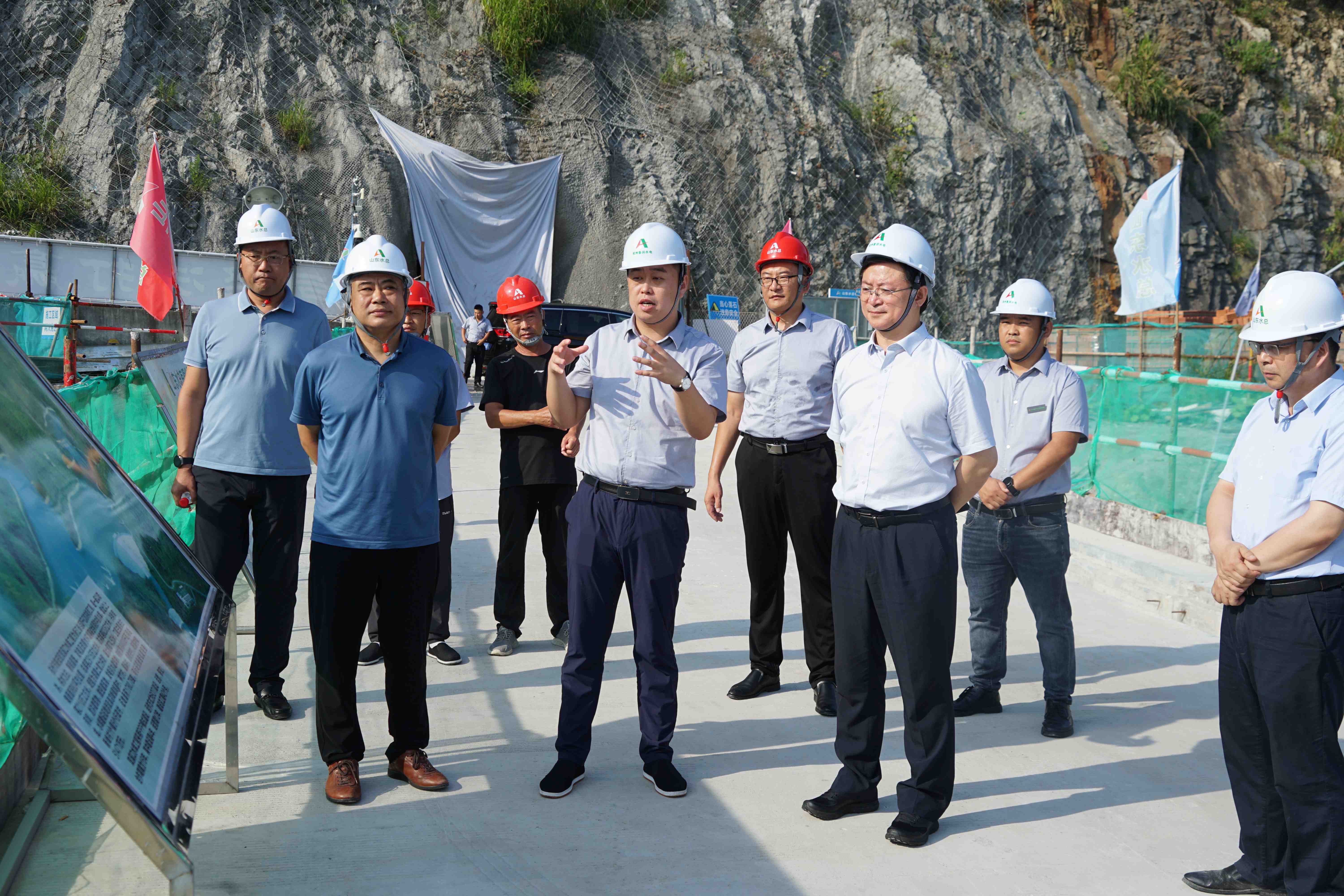 8月10日,山东高速集团总工程师、路桥股份党委书记、董事长周新波,路桥股份总经济师安耀峰莅临双溪口水库项目开展调研指导工作。九游娱乐(NINE GAME)官方网站党委书记、董事长刘深远,党委委员、副总经理付海华及鲁润九游娱乐(NINE GAME)官方网站、第六分九游娱乐(NINE GAME)官方网站相关人员陪同调研。