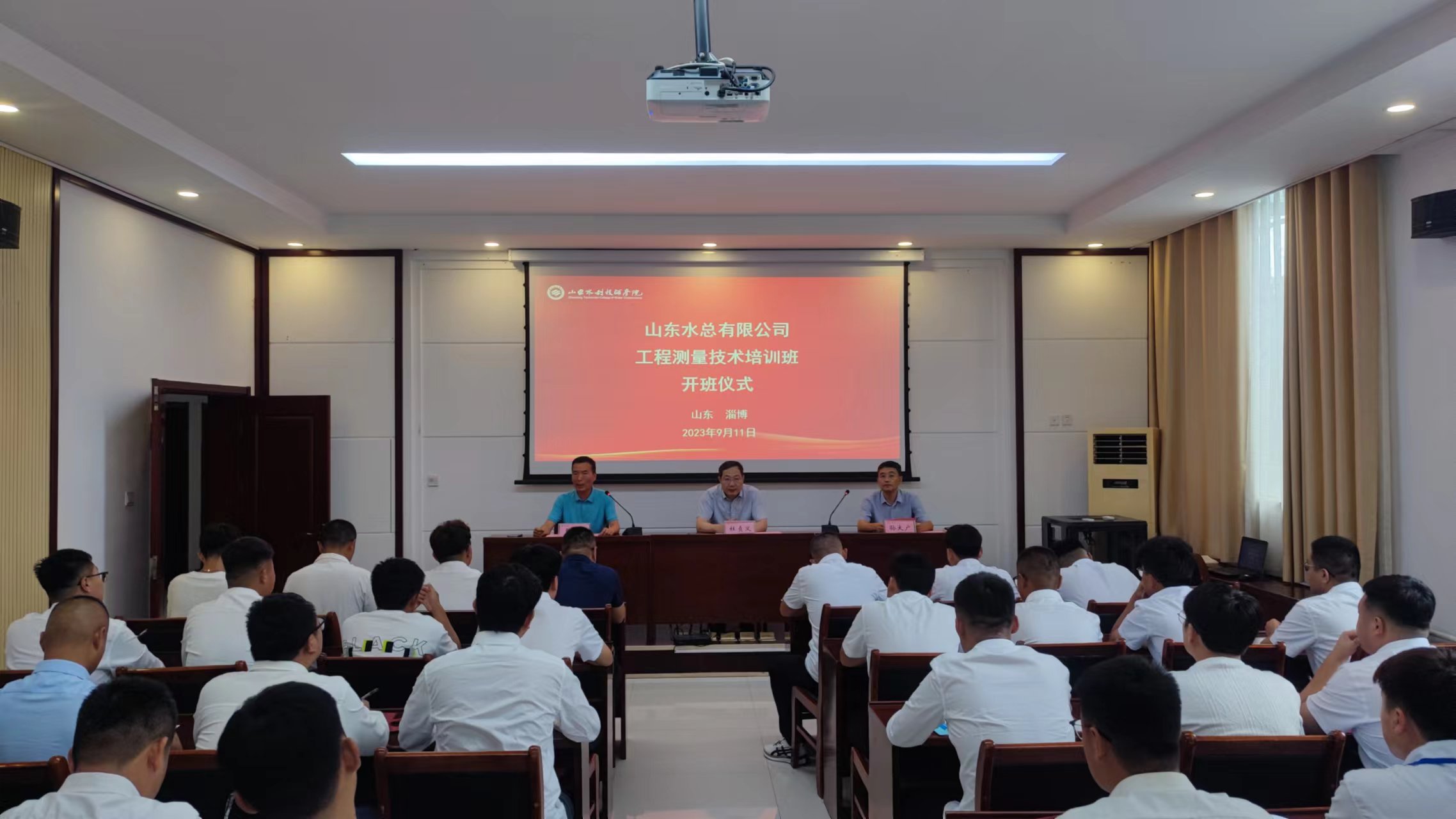 9月11日,九游娱乐(NINE GAME)官方网站2023年工程技术测量培训班在山东水利技师学院顺利开班,九游娱乐(NINE GAME)官方网站党委委员、副总经理杜贞义,山东水利技师学院党委委员、高级技工部主任孙大广出席培训班开班仪式,仪式由山东水利技师学院培训处副主任张岩主持。来自九游娱乐(NINE GAME)官方网站各权属单位30名测量人员参加本次为期5天的全脱产学习。