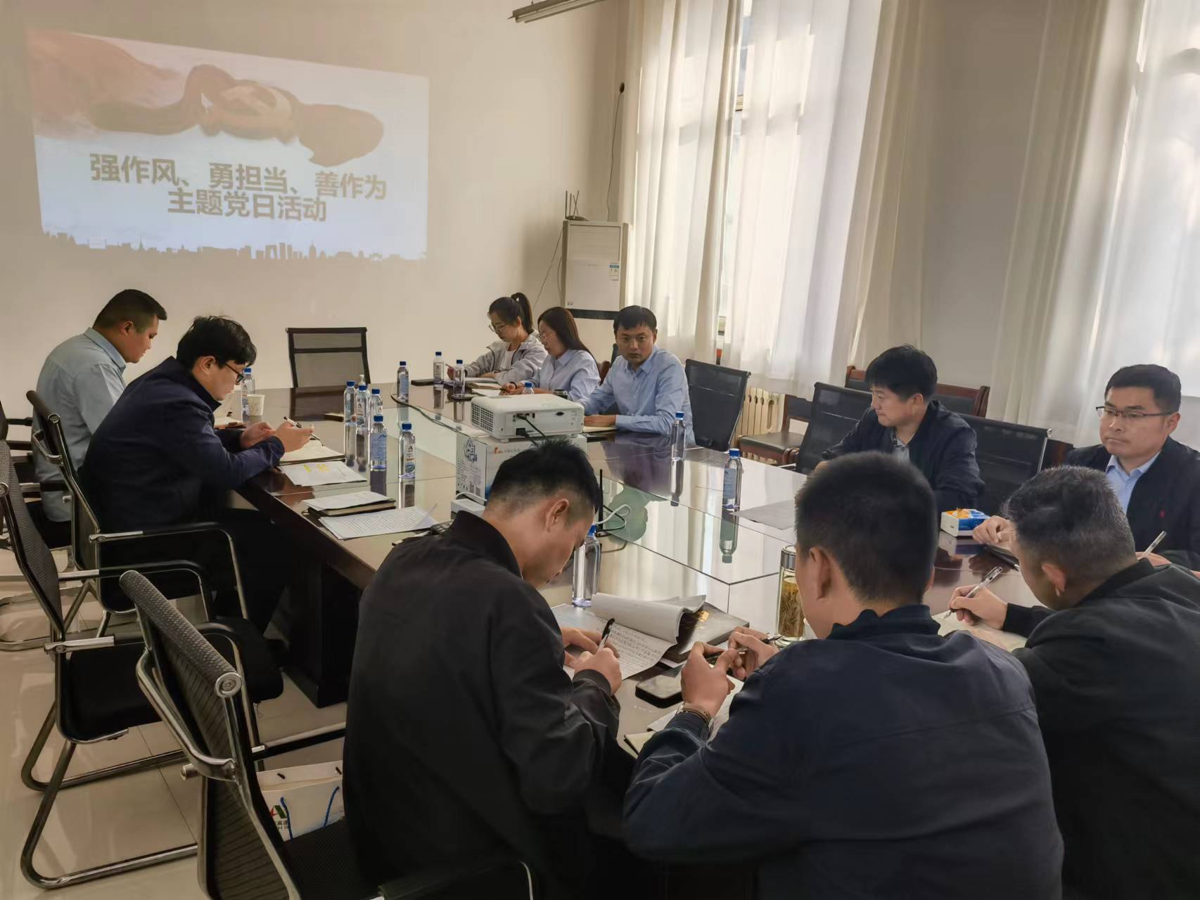 10月16日下午,第三分九游娱乐(NINE GAME)官方网站党支部在平邑县兴水河项目部开展“强作风 勇担当 善作为”主题党日活动,活动由支部书记徐浩主持,全体党员、入党积极分子、各项目负责人参加。