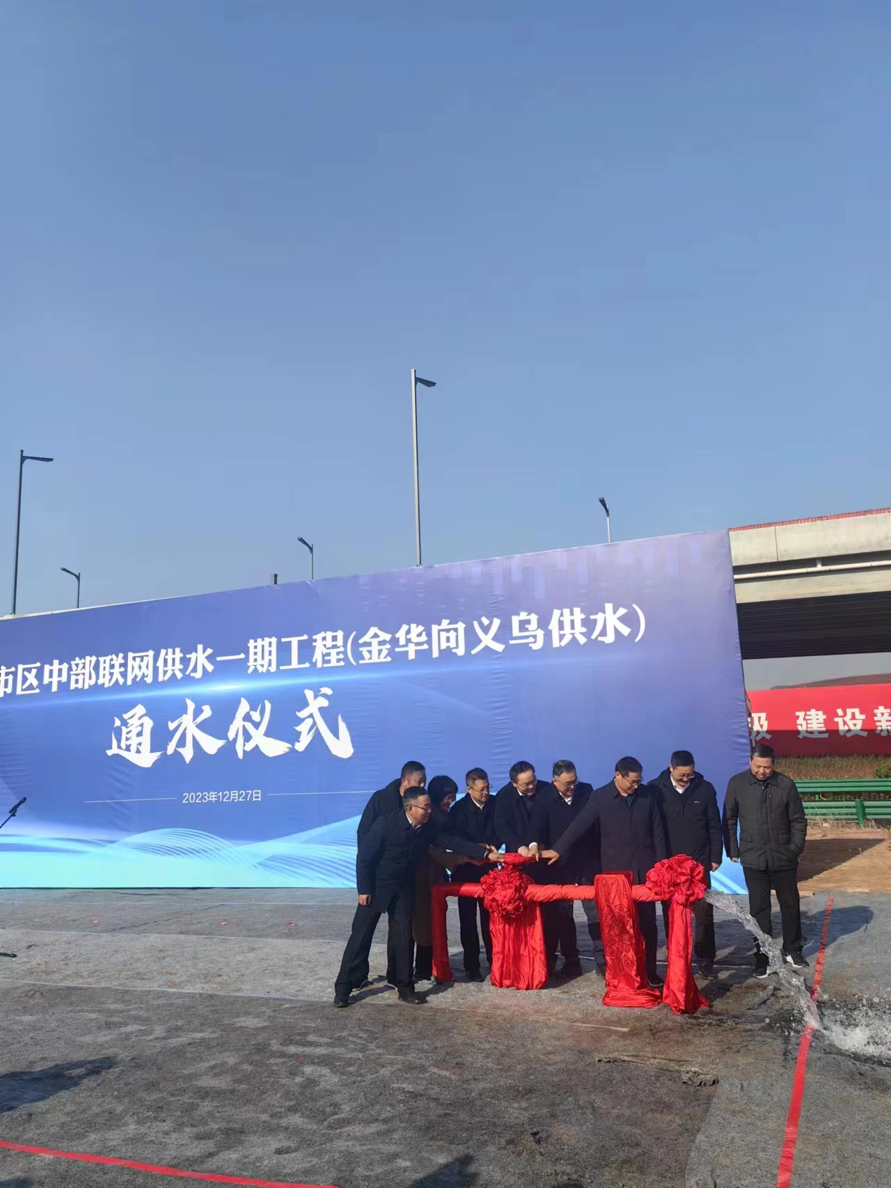 12月27日上午,在金义都市区中部联网一期工程中央大道与华东街交叉处,随着一股清泉从供水管道口喷涌而出,由第六分九游娱乐(NINE GAME)官方网站承建的金华—义乌供水工程实现正式通水。金华市政府、金华市城投集团等相关单位共同见证了该通水仪式。