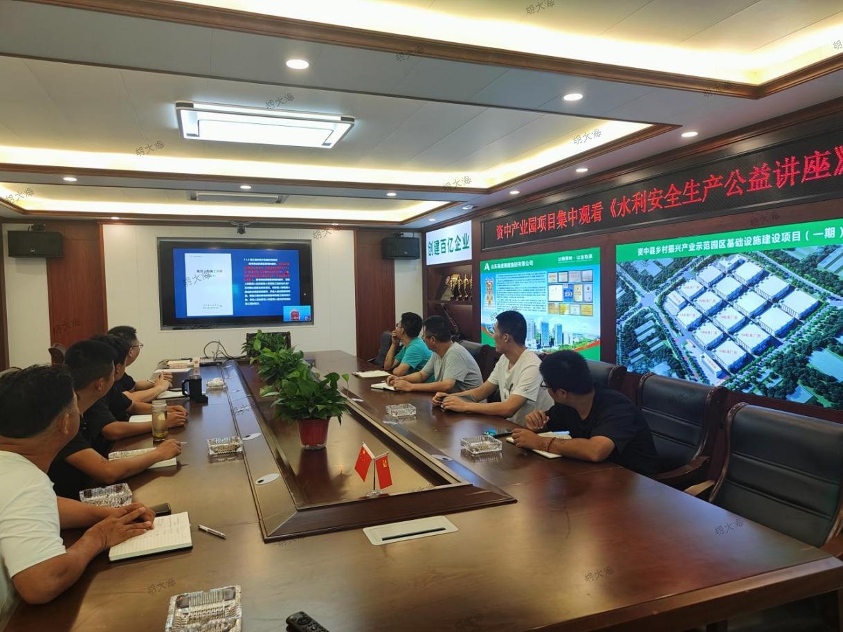 第五分九游娱乐(NINE GAME)官方网站资中产业园项目部组织全体员工参加《水利安全生产公益讲座》,详细学习了水利安全生产风险管控“六项机制”及水利工程生产安全重大事故隐患判定标准,并结合实际案例,掌握了水利工程建设期间可能出现的各种安全问题及针对性的解决方案。同时,项目部还模拟“四不通知”--“畅通生命通道”应急演练。通过演练,职工的应急意识得到了有效提升,对突发事件的应对有了更清晰的认识,掌握了更多的自救互救技能。