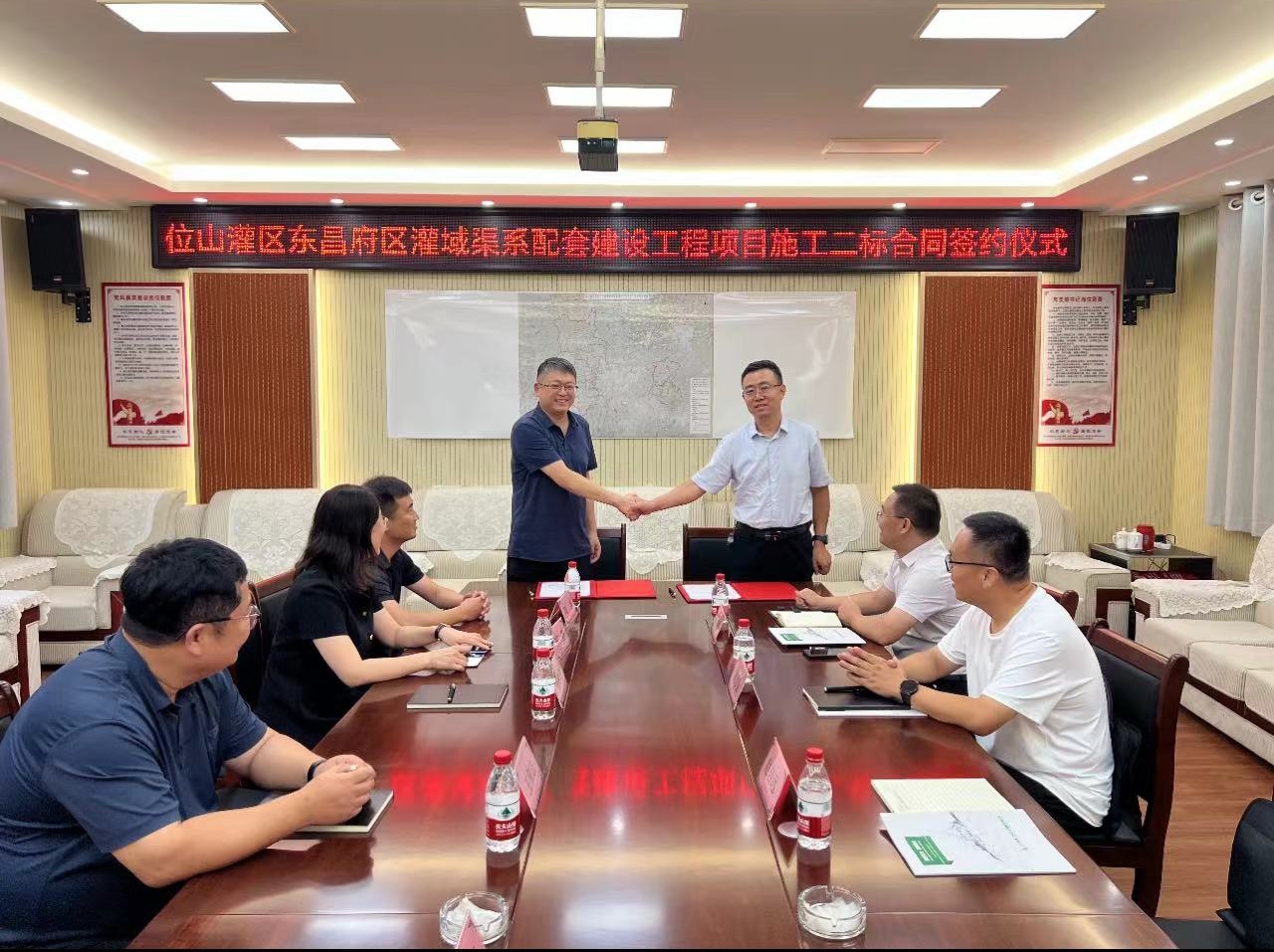 7月15日,二局有限九游娱乐(NINE GAME)官方网站新中标的位山灌区东昌府区灌域渠系配套建设工程项目签约仪式在该项目驻地举行,东昌府区水利局代表,发包人代表,承建方二局有限九游娱乐(NINE GAME)官方网站代表等参加签约仪式。