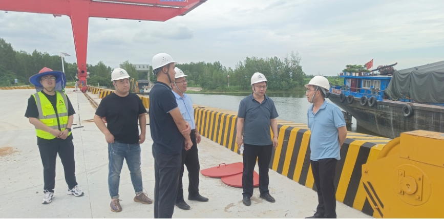 袁英杰一行首先到枣庄市中区西泇河引调水工程项目实地考察,听取了参建人员对项目概况、工程进度、施工重难点等情况的介绍。向奋战在高温一线的职工表示慰问,并送来了防暑降温物品,叮嘱参建人员在高温天气时要注意防暑和劳动安全,合理安排好作息时间,保证身体健康。随后又来到枣庄港薛城港区薛城作业区泊位改造提升项目进行调研,深入施工现场,实地查看了项目进展情况。袁英杰强调,要牢固树立安全生产责任意识,预防极端天气带来的安全隐患,为项目建设保驾护航,确保项目建设有序推进。