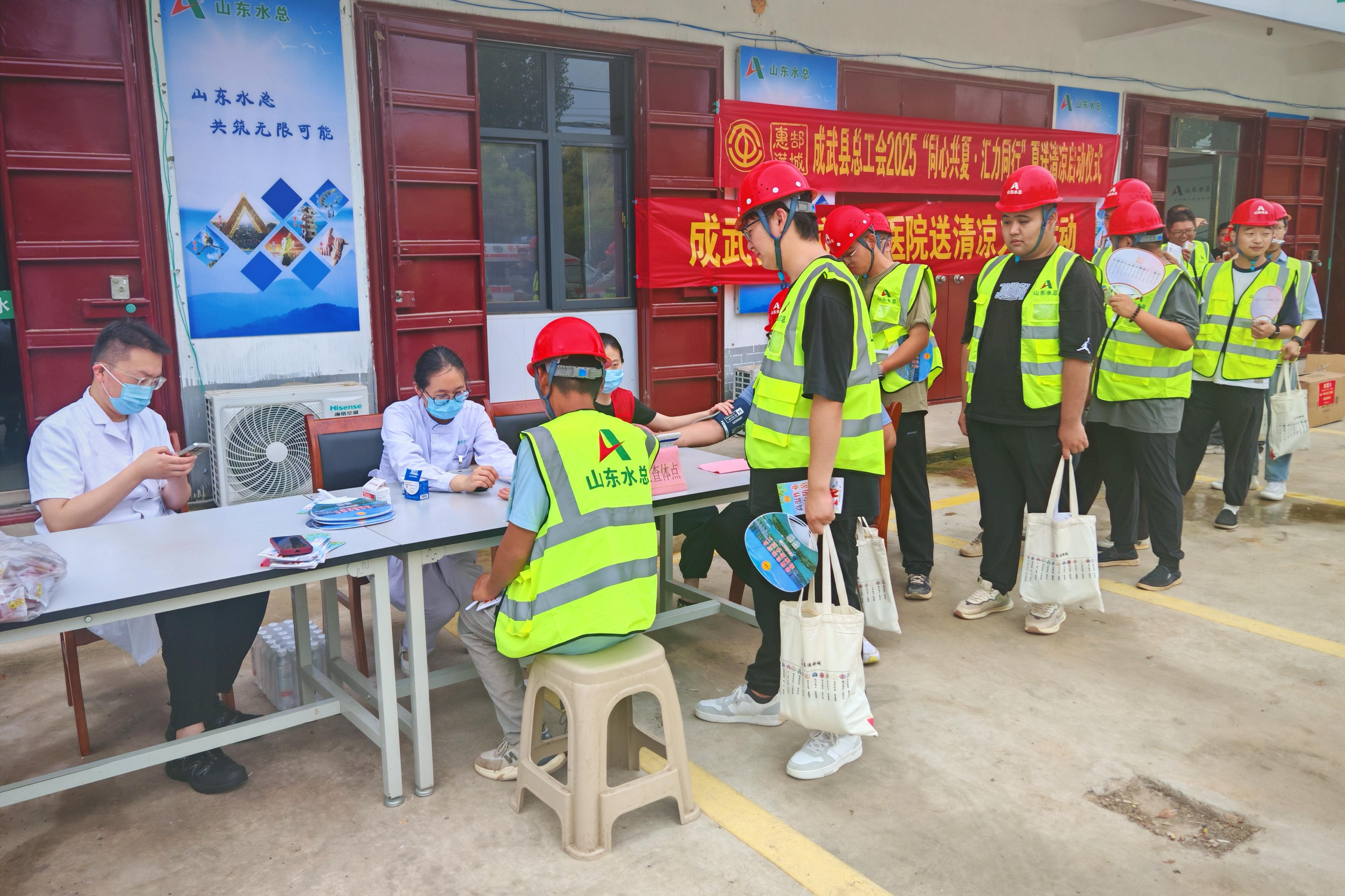 菏泽市成武县总工会、成武县公立中医医院一行到基础有限九游娱乐(NINE GAME)官方网站成武县引调水工程开展夏送清凉慰问活动