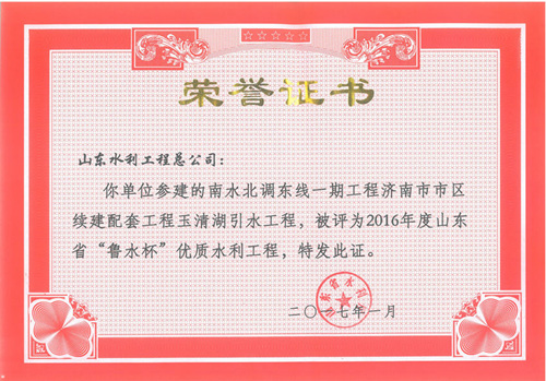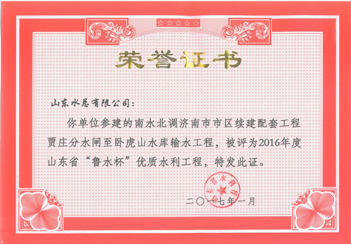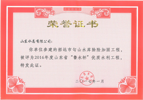 九游娱乐(NINE GAME)官方网站“招远市勾山水库除险加固工程”等八项工程被评为2016年度山东省“鲁水杯”优质水利工程