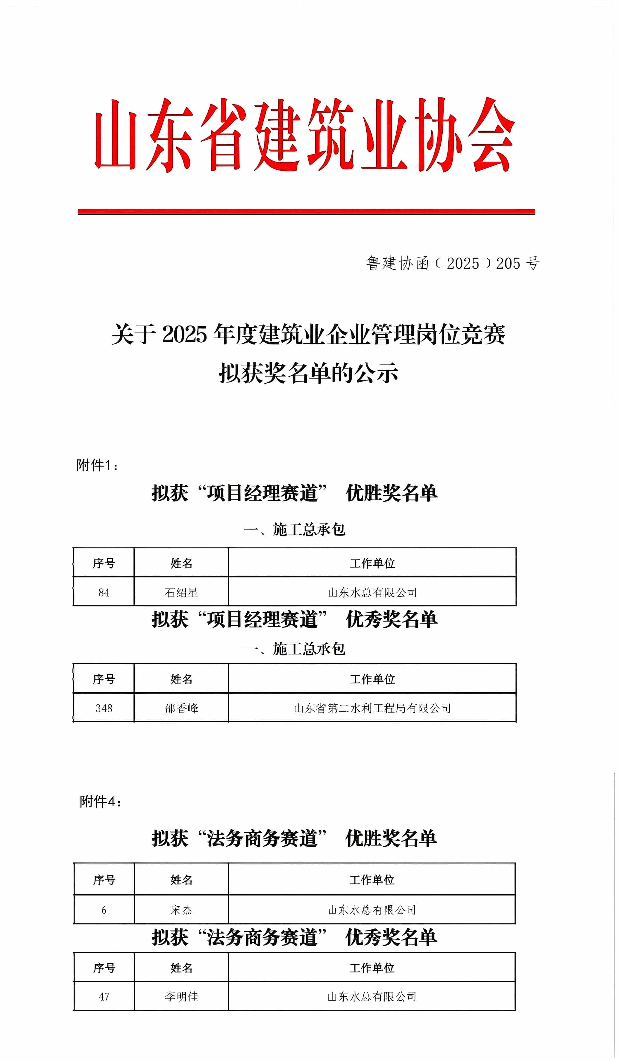 近日,由山东省建筑业协会发起的2025年度建筑业企业管理岗位竞赛圆满落幕,九游娱乐(NINE GAME)官方网站选送的参赛人员凭借扎实的专业素养、精湛的管理能力脱颖而出,在“项目经理赛道”中,第三分九游娱乐(NINE GAME)官方网站石绍星获优胜奖,二局有限九游娱乐(NINE GAME)官方网站邵香峰获优秀奖;在“法务商务赛道”中,企业管理部宋杰获优胜奖,第三分九游娱乐(NINE GAME)官方网站李明佳获优秀奖。以上荣誉的获得充分彰显了九游娱乐(NINE GAME)官方网站建筑行业管理岗位人才的专业素养与创新活力。