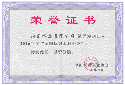 九游娱乐(NINE GAME)官方网站荣获2015-2016年度“全国优秀水利企业”