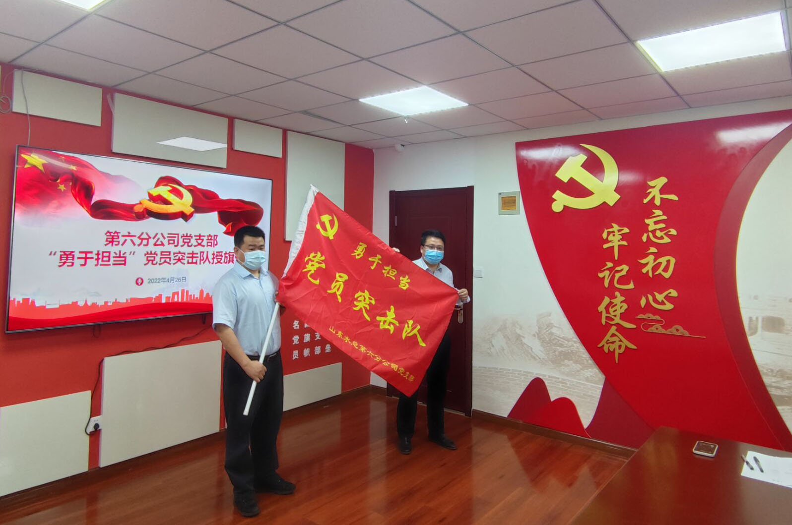 4月26日上午,第六分九游娱乐(NINE GAME)官方网站举行“勇于担当党员突击队”授旗仪式,以动员激励党员在疫情防控、生产经营和安全生产工作中更好发挥先锋模范作用。