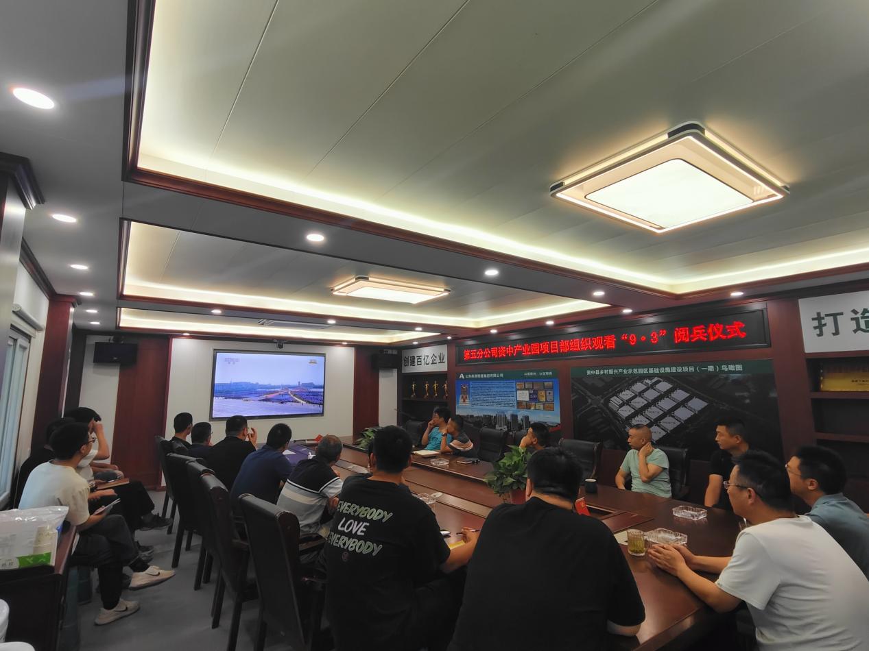 为弘扬爱国主义精神,厚植家国情怀,铭记历史征程,9月3日,第五分九游娱乐(NINE GAME)官方网站资中县产业园项目部组织全体员工在会议室集中观看纪念中国人民抗日战争暨世界反法西斯战争胜利八十周年阅兵仪式现场直播。